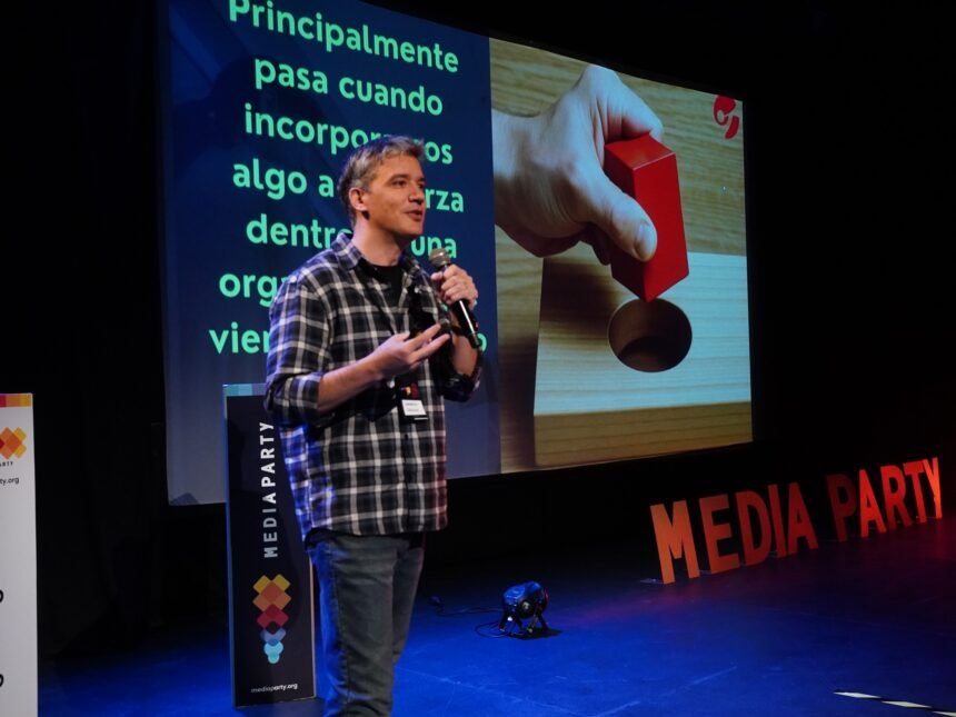 Durante Media Party hay entrenamientos y talleres para medios, entusiastas y estudiantes. Foto: Emmanuel FernándezNo fue la única charla sobre IA, un tema caliente no sólo en la tecnología en general sino en medios en particular. Sam Gregory, director ejecutivo de WITNESS, presentó una conversación sobre los desafíos actuales de la detección de deepfakes. Explicó cómo las tecnologías de IA generativa complejizan la autenticidad de los contenidos audiovisuales y detalló la experiencia de la organización con la Deepfakes Rapid Response Force, un mecanismo de asistencia para periodistas y verificadores de hechos. También repasó por qué los métodos de detección suelen fallar y qué criterios podrían mejorar las herramientas existentes para preservar la confianza en la evidencia digital.
