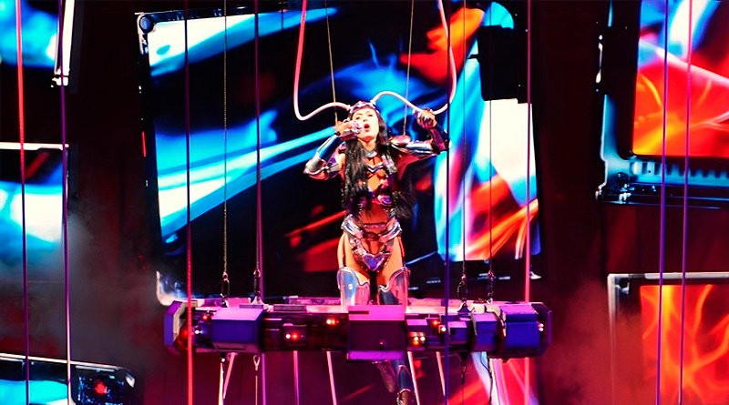 La artista californiana salió del centro del escenario del Palacio de los Deportessuspendida entre cables y estrenando toda la parafernalia cibernética y de heroína de videojuegos que sería central en su propuesta conceptual de la noche. Rodeada de un ejército de bailarines de carácter biónico, el primer bloque de los que se compuso la noche propuso fue concretando con “ARTIFICIAL”, “Chained to the Rhythm”, “Teary Eyes” o “Dark Horse” una base con la que ir preparando a un público entusiasmado, pero entrando todavía en escena.