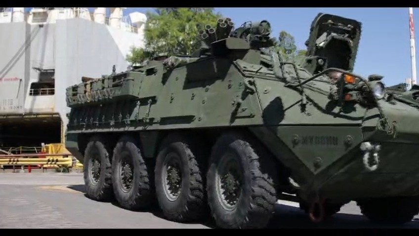 La tanda inicial de vehículos blindados Stryker 8×8 arribó al país, hoy desembarcaron en el Puerto de Zárate y serán transportados al cuartel de Boulogne.