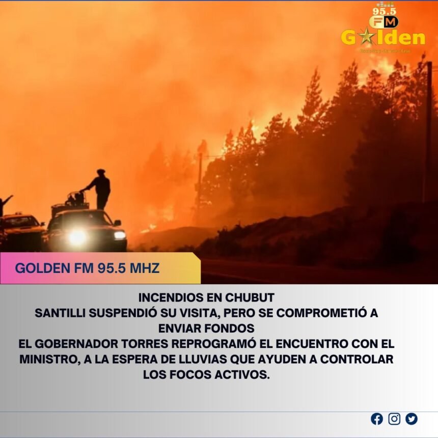 El ministro de Interior, Diego Santilli, suspendió una visita que tenía agendada a Chubut y se comprometió a enviar fondos para combatir los incendios que ya consumieron más de 12.000 hectáreas en medio de una situación crítica en la Patagonia.